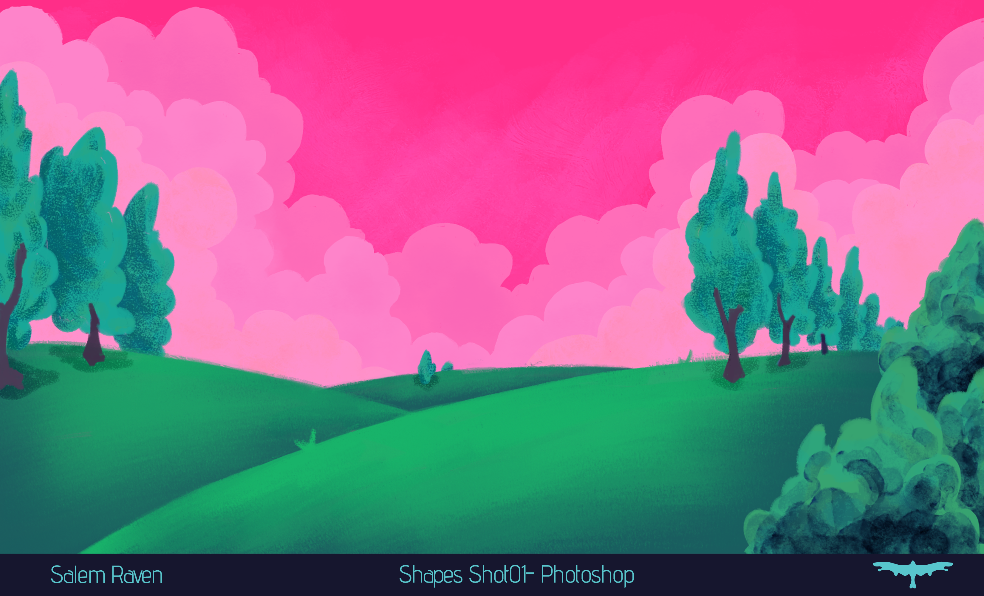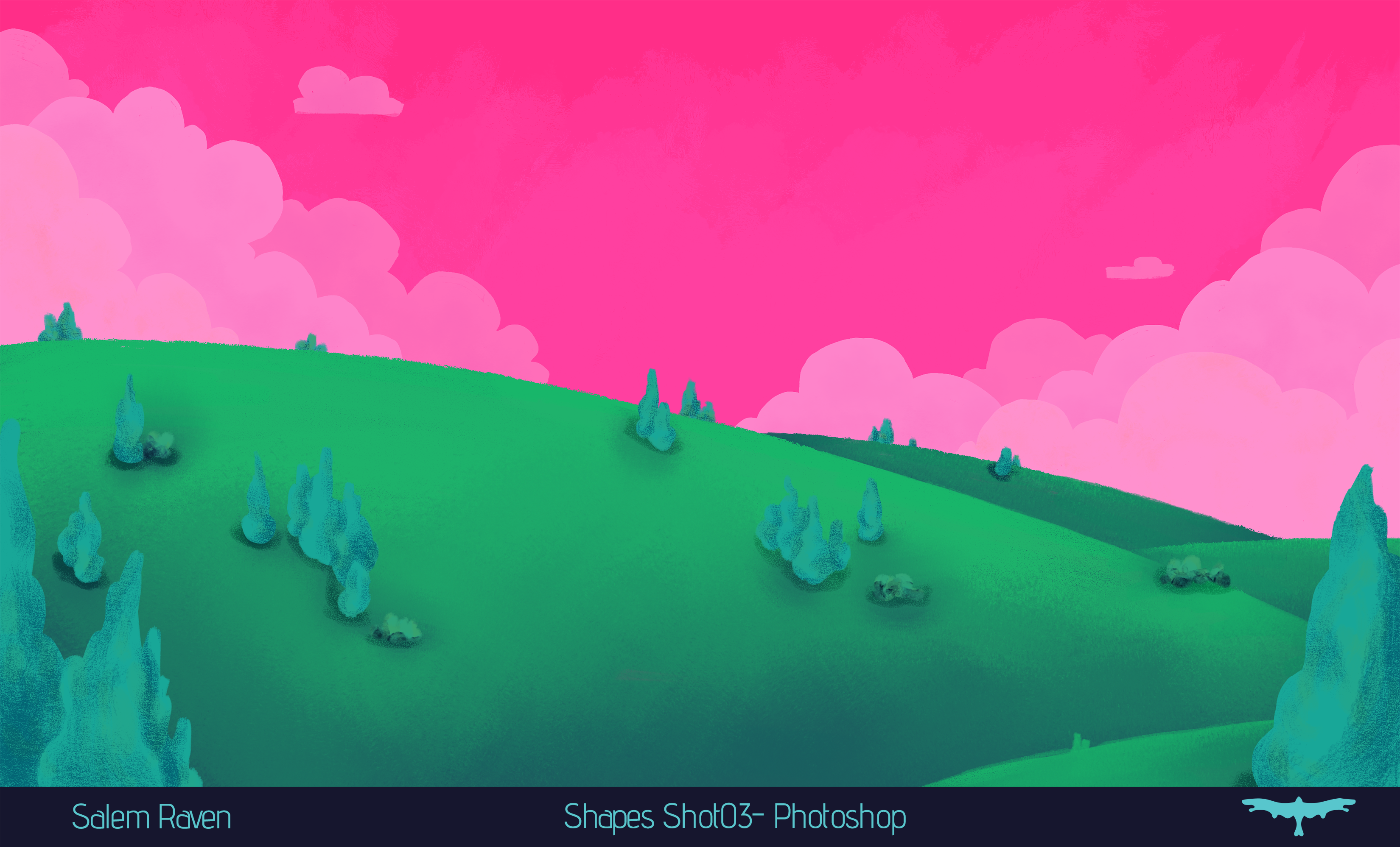 Along with blocking in colour for 10 backgrounds, Salem had the responsibility to fully render 4 backgrounds for the senior film, Shapes. This is Shot04