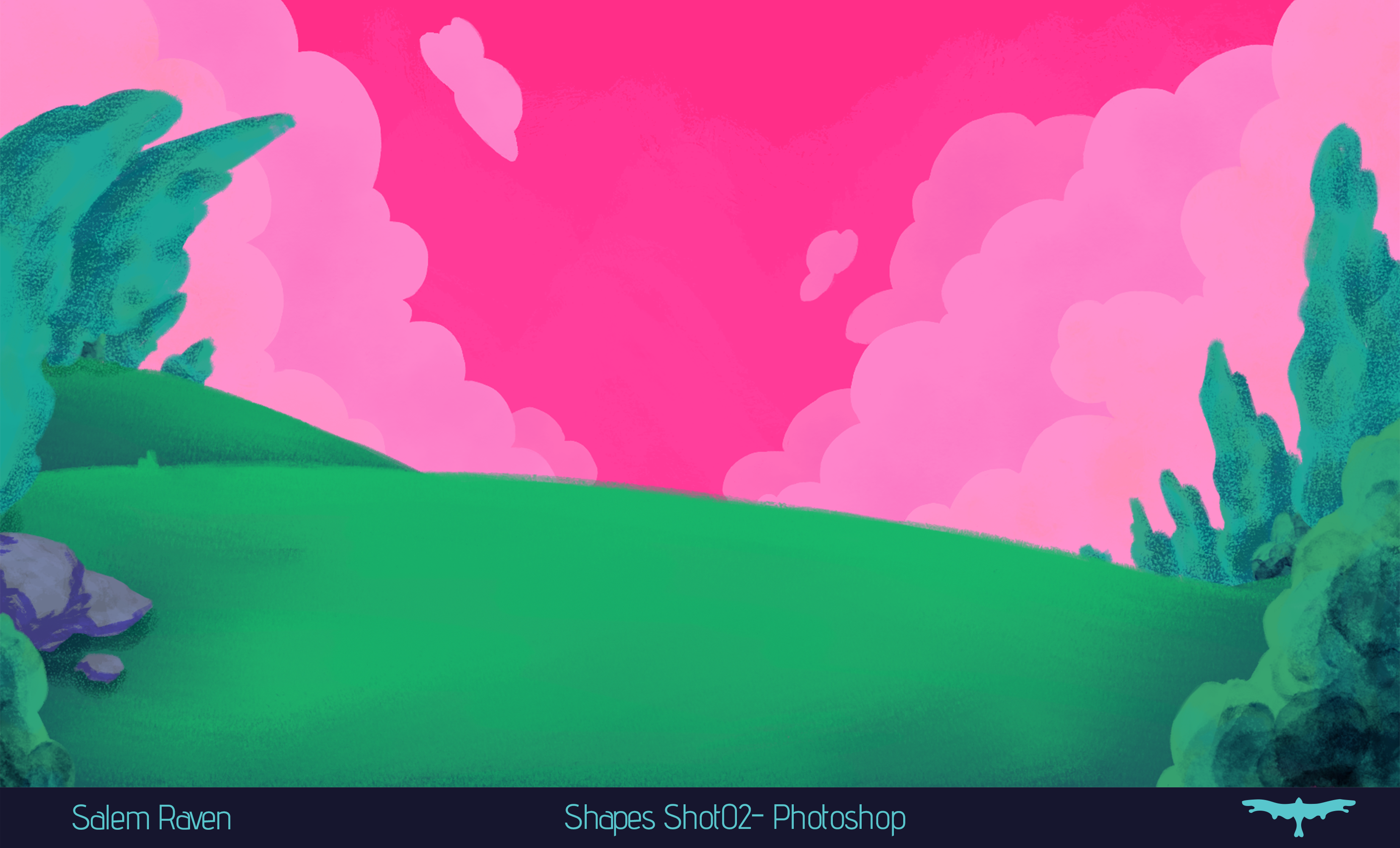 Along with blocking in colour for 10 backgrounds, Salem had the responsibility to fully render 4 backgrounds for the senior film, Shapes. This is Shot02